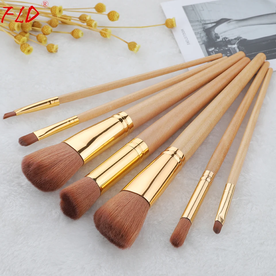 .image of FLD 5Pcs Professional Makeup Brush Set Wood Handle Kabuki Blush Brushes Set kits Foundation Face Po