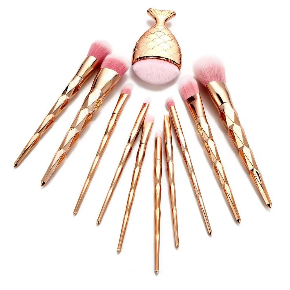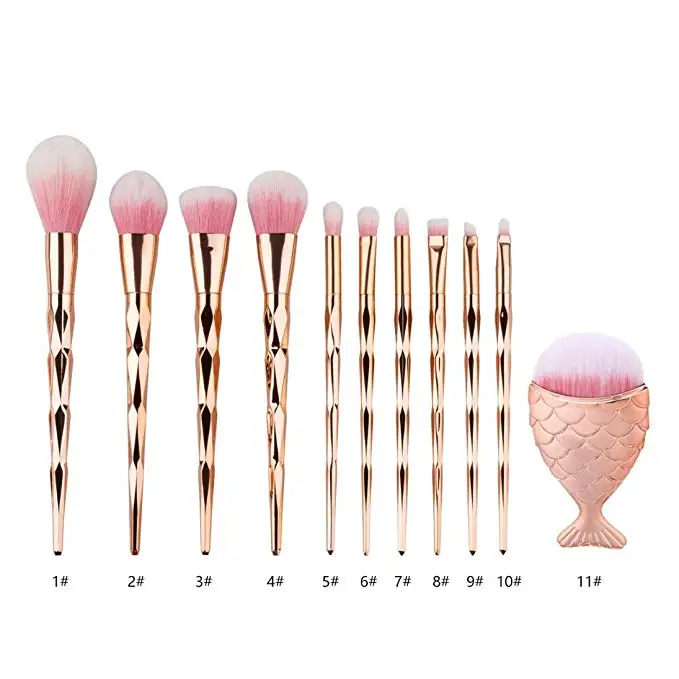 Limited Price for 11Pcs Diamond Rose Gold Makeup Brushes Set Mermaid Fishtail Shaped Foundation Powder Cosmetics Brus