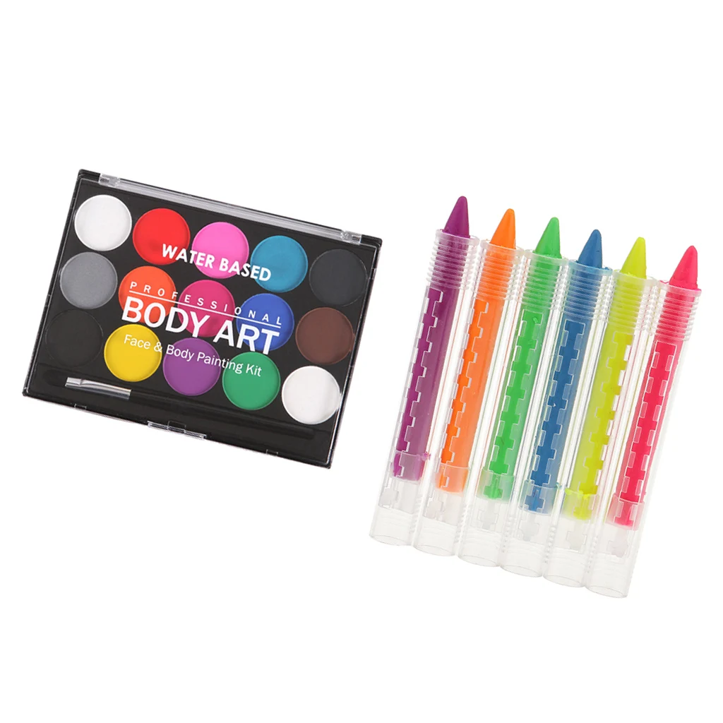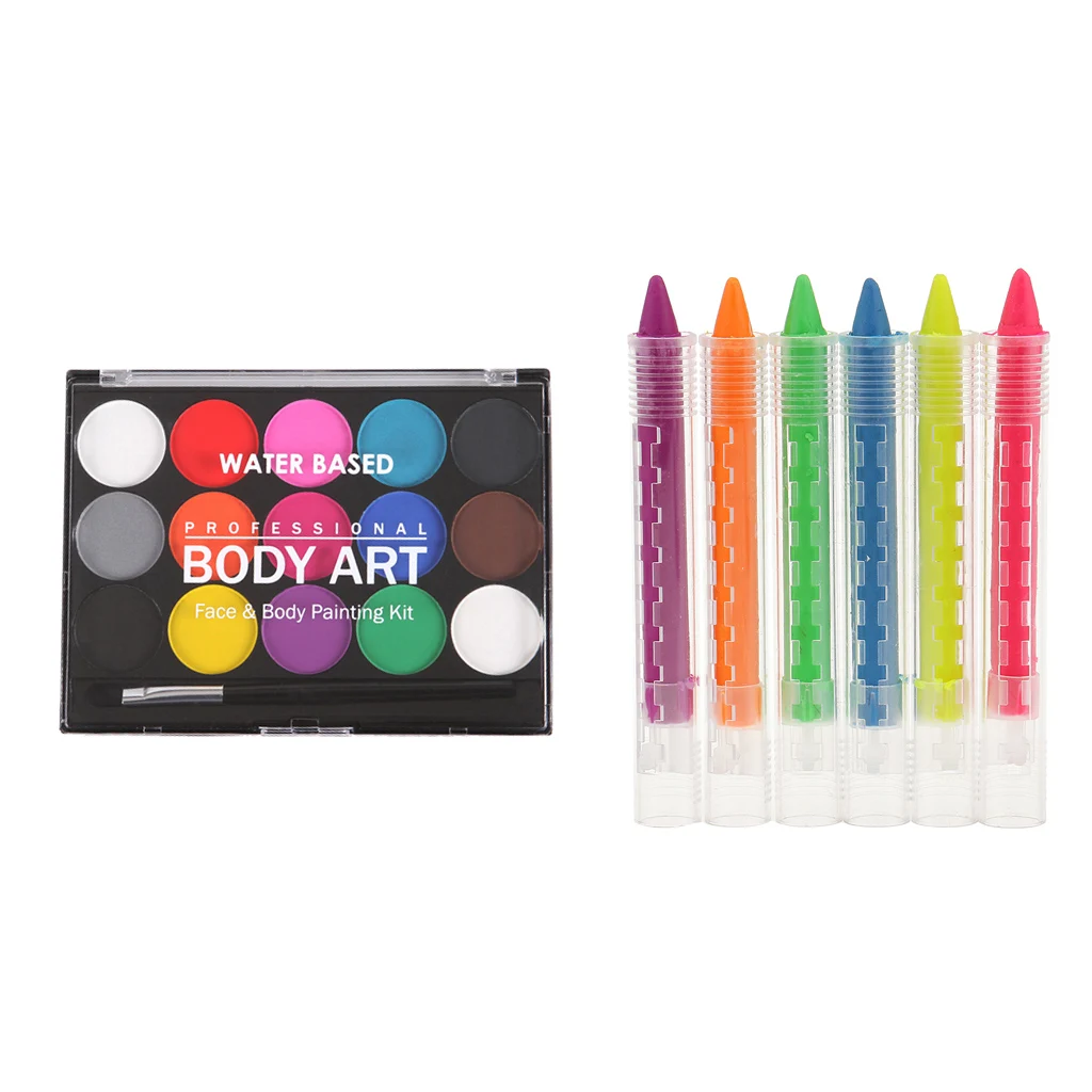 Best Chance for 15 Colors Water Based Face Body Paint Brush Makeup 6 Colors Paint Sticks Set