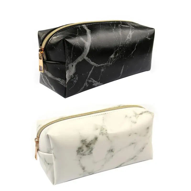 .image of 1pcs Beauty Pattern Cosmetic Make Up Brushes Bag Portable Brushes Holder Marble Case Brush Bag Zipp